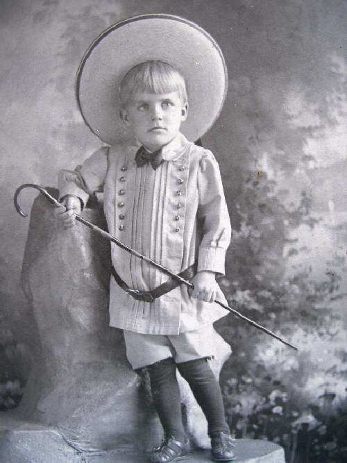While the wide-brimmed sailor hat may have originated in England and appeared later in America, it was very popular in America as well. We are not sure when it first appeared in America. They seemed to have been most populsar in the 1880s-1900s. We see quite a number of boys wearing them at this time. They were often, but not always worn with sailor suits. We see them beding worn with Fauntleroy suits as well during this period. The style was fairly standard during this period. After the turn of the 20th century, caps became increasingly popular and we see fewer hats. We note a hange in hat styles during the 1910s. The popularity of sailor hats continued to decline in the 1910s, but we see boys wearing hats with with turned downed brims. Here either parts of the brim or the whole brim was turned down. We note these hats with various crowns. We note a number of different styles. Some of the crowns were the same as the traditiional sailor hats. Some hat flat crowns shaped rather like fedoras. We only see this style in the very late-1900s or 1910s. After World war I in the 1920s we no longer see sailor hats to any extent.
