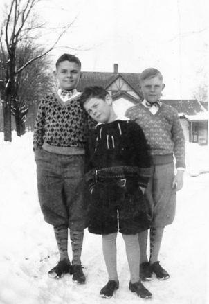 When knickers went out of fashion in the late-1930s and early-40s, so did knee socks, at least for boys. We still se boys wearingbknickers in the early-40s. Some boys wore knee socks, but ankle socks were very common. Mostly we see boys wearing short pants, comonly with ankle socks or long pnts also with nkl sicks. We see some boys wearing knee socks--mostly younger boys when dressing up.. Even boys wearing short pants suits mostly wore ankle socks. We see a few younger boys wearing long stockings in the early-40s, but by mid-dcde long stockings had geb=nerally disappeared. They persisted a little longer in the northerntier od sttes near Cnada where thy continud ti be worn into th early-50. And you almost never see boys wearing knee socks for school or casual wear. They wre worn by Cubs and Scouts. Girls continued to wear knee socks. This may have been a factor in the declining popularity. Many boys began seeing knee socks as girl's garments. We still see some boys wearing them, but the great majority of boys swore ankle socks. We see a variety of ankle socks. Stripes and argyles were very popular. We don't see many boys wearing white ankle socks in the 40s.