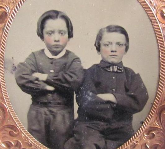 Shirts with small collars seem the dominant type at mid-century, but we do see some larger collars as well. The collars here seem on the larger side of the collars popular at the time. We notice both attached and detachable collars. The collars were mostly part of the shirt and not detachable, an inovation that appeared at the end of the 1840s and was grew in popularity. It is not always possible, however, to detect detachable collars from available photographs. We note many collars done in white even with colored and patterned shirts. These collars in white may be detachable collars even though some are relatively small. We are not yet sure about this. White collar of course would be easier to wash. We note collars in a range of styles. We see mostly pointed collars, inclusing Eton styles. We see some rounded collars. Most shirts buttoned at the collar. The shits worn here were a less common style.