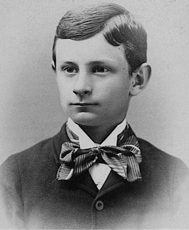 Wing collars were usually worn with neckwear. They were commonly worn with neckties tied in very large knots--these large knots were called Windsors. This is how adult men wore them. And this is how teenagers also wore them. Younger boys might wear bows, but this ws not very common because younger boys did not commonly wear these wing collars. We do not see the really large bows that boys wore with lace and ruffled collars. But we do see modestly sized bows. They may have been worn with other neckwear, but we usually see them with Windsor knots.