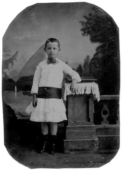 Boys wearing sashes with Fauntleroy haf them tied so the ends fell down to the side. We do note note this with dresses. We know that girls sashes were tied in bows at the back. We suspect that the same was true for boys wearing dresses. Unfortunately, we have few back views of the sashes. We see these sashes mostly in the 19th century at least in connection with boys.