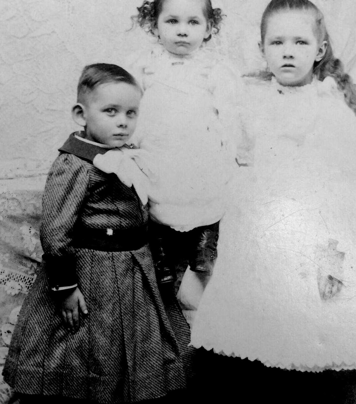 The age at which boys were breeched varied over time and from family to family. We still see many boys wearing dresses at age 3. A good example is an unidentified Pennsylvania boy, we think in the 1880s. We also note an unidentified Indiana boy. Another example is an unidentified Illinois boy. And we note twins Arthur and Henry about 1870. And two more Indiana boys look to be about 3-4 years old. We note another Massachussetts boy in the 1880s. Many families breeched their boys at 3 years of age or sometimes while they were age 3. It was th first age hat really large numbers of boys were being breeched. And the number of boys being breeched seems to have increased as the 19th century progressed. We also begin to see more boy-styled dresses after mid-century. That is something you do not see in he earl-9h cenuy. Such dresses did not even eist unilafter mid-cenury. We note many different dress styles, both plain and fancy. A California boy, Carlton Gardner, wears a white dress at age 3 years. We notice an Ohio boy wearing a very plain, long front-buttoning dress. Another example is J. Nelson Patterson. Another example is Richard Lancaster Witzleben in 1899. Like the Ohio boy, he weaes a very plain dress. We do not know a great deal about the breeching process. We have few actual breeching images, but we know that breeching occured because we begin to see more portraits of 3 year olds wearing knee pants and fewer boys even at this young age wearing dresses. Breeching at age 3 became less common in the early-20th century, but we do not have photigraphic imges to help assess this. We believe that social class factors were involved here, but we do not yet fully understand this. Toilet training was a factor in boys wearing dresses. The fact that many boys were not breeched at age 3, suggests that much more was involved than toilet training. It is likely of course that boys from affluent families are over represented in the photographic record. A complication here is that families in isolated rural areas may be less connected with fashion trends and some of the boys may have contunued wearing dresses in the early -0h century when this convention was passing out of fashion. Some options appeared for 3 year olds that mothers were not yet ready to breech, these include both kilt suits (1870s-1890s) and tunic suits (1900s-10s). Se see a lot of boys as young as 3 years beginning to wear knee pants in the 1880s. This was in part due to mothers' desired to outfit them in Little Lord Fauntleroy suits--a popular craze befinning after Mrs. Burmnett published her book in 1885.