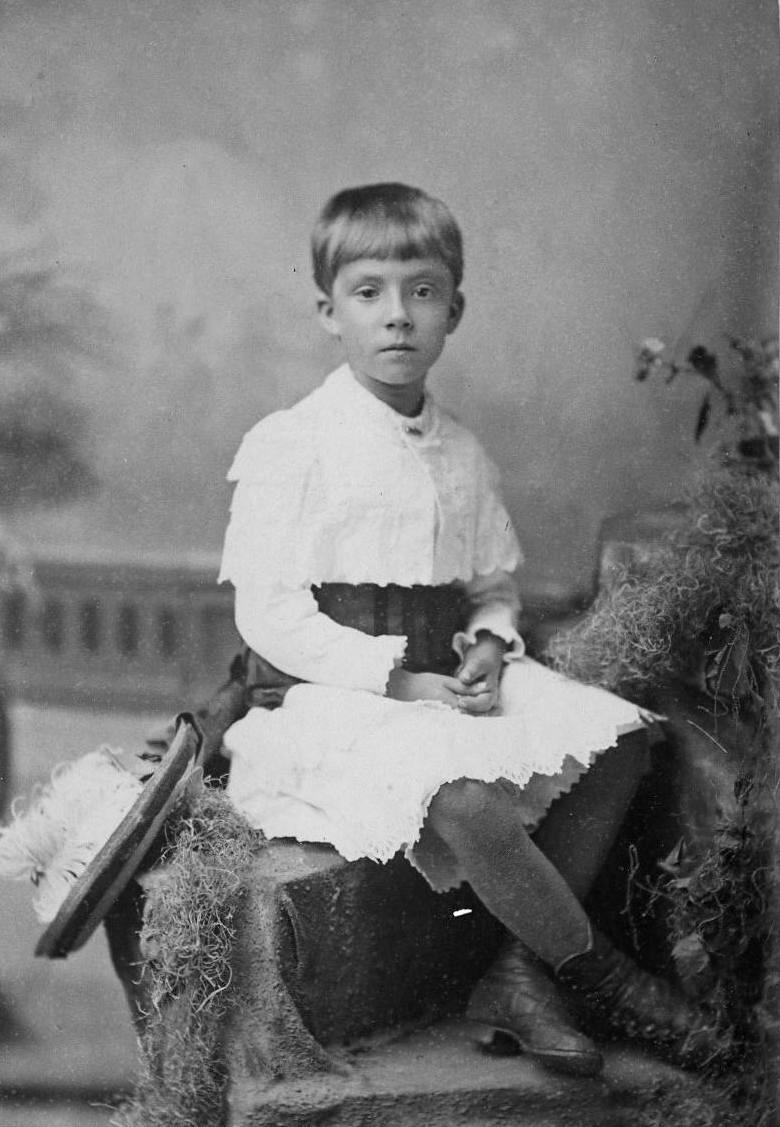 By age 6 we begin to see far fewer boys wearing dresses. This varied somewhat chrobnologically. It was probably more common un the early-19th century than the later part of the century. This is, however, complicated by the fact that there were a lot more affluent Americans in the late19th century. This was a result of the wealth created by the industrialization of the country after the Civil War. We believe a major factor in the fewer number of boys wearing dresses at age 6 years was the developing public education system. Age 6 years was when many boys began school and few boys attended school still wearing dresses. Of course many boys turned 6 years after September when school began. Thus they might not begin school until they were nearly 7 years old. We suspect this was a factor for some some of the older boys wearing dresses. There was also a major chronological factor. Public schools were not well-established in the early 19th century. And in the South there were few public schools even by the mid-19th century. The situation was changed by the late-1890s when most children were attending school. Again social class was a factor. Working-class boys if they went to school at all went to public schools. And we suspect that most working-class boys were breeched well beforeage 6 years. Boys from affluent families were most likely to be still wearing dresses as age 6 years. They might be tutored at home and thus breeching could be delayed by doting mothers. Mothers in the 19th century had much more say about how children were dressed. Until the late-19th century, ready-made clothes were not common and thus there was much more diversity. The mass-media was not yet an important factor. And until a boy began school, his acquaintces were largely limited to family. Thus family dress conventions were very strong. All of this mean that some mothers could continue to outfit boys in dresses at age and in some cases well beyond age 6. We notice a Rhode Island family in which the younger brother looks about 6 years old.