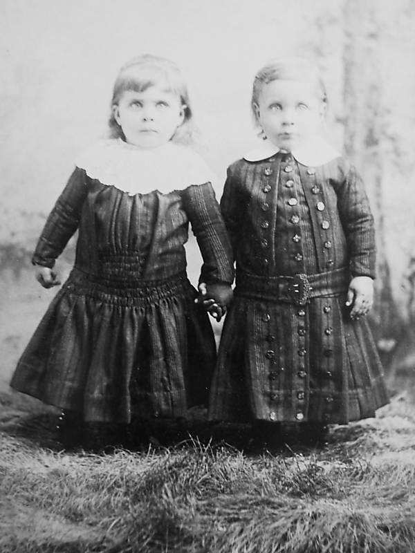 We notice a range of elenents that were used to differentiate boy dresses from girl dresses. It shouldbe stressed that they were not uniformily utilized by mothers at the time, but the photographic record shows that they were commonly used by many mothers. And as many dresses were sewn at home or by seamstresses and not bought readymade, mothers had the ability to chose the stylistic elements for each child. The most important destinctive feature was that boy styles were more plain than those worn by girls. Here the Fauntleroy Craze of the 1880s introduced a complicating element. They were also more likely to have front buttons. In fact, buttons were much more common on boy dresses. Belts and defined waistlines were also more common for boy dresses. We also see styilized jackets, presumably emulating the jackets of kilt suits which were worn by boys. This is not to say that such elenents did not asppear in the dresses worn by girls. It is to say that they were generally more important in the dresses worn by boys. Color may have been another factor, but this is much more difficult to assess in period black-and-white photography. Accessories are a stylistic element to consider. Floppy bows were more common for boys than girls. Lace collsars are more complicated. And modern color conventions were not yet well wsrtablished in the 19th century. As conventions for boy dresses varied from family to family, the most valuable images for evaluating these conventions are family portraits. When trying to assess unidentified portraits, the reader should not use any single element as definitive, but rather assess how many of the different elements are found. And hair styling can be used as conformation.