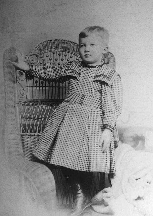 Sailor styled dresses appear to have been very popular for children. They were of course not exclusively worn by boys. We also notice girls wearing sailor dresses. We have noted portraits of English boys wearing sailor dresses. There were a wide range off styles, both traditional and non-traditional. Our assessment is preliminary, but the traditionally styled sailor dresses seem more popular for the girls than the boys. We seem to see boys mostly wearing non traditional styles. We think this was because by the time traditional styles became popular that the popularity of boys wearing dresses had declined. And there were other options like sailor styled kilt suits and tunic suits. Some sailor dresses look rather like middly blouses worn with skirts/kilts. These might be called kilt suits. Other skirted outfits are clearly one-piece dresses. Here it is not always easy to tell the difference. We notice boys wearing these dresses in the 19th century. We are not sure when they first appeared. We do not even know if the first sailor dress were worn by boys or girls. There may have been dresses with some sailor features before a clearly sailor dress appeared. We have not yet found a sailor dress from the 1860s, but that does not mean that they did not exist. We are constantly looking for examples. We note some sailor dresses in the 1870s, but they seem more popular in the 80s. Some were styled traditionally, but there were other sailor-inspired dresses. Sailor dresses for boys seem popular in the 1890s, but declined sharply in the 1900s. They continued popular with girls for some time. They were a very populr style for American girls as well. They were particularly popular for girls in the early-20th century, but the style has never really disappeared.