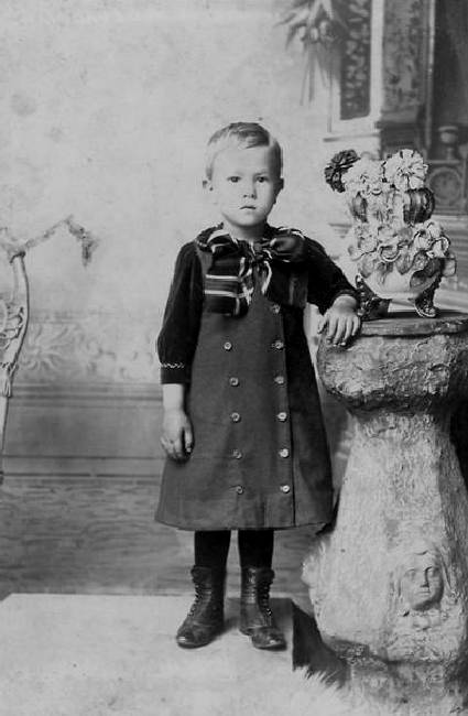 Many dresses had defined waislines. This was the more common approach to the waist in garment desisn. The waisline treatment varied over time and thus can be useful in fating old photographs. The waisline treatment was done in a variety of ways. One common approach was to vary the bodice above the waistline with the skirt below the waistline. This can be done in a number of ways. Approaches included decoration like smocking on the bodice or different materials or pleating on the skirt below the waistine. The placement of the waistlinr also varied. Of coutse it would be commonly be placed at the waistline. But here placement varied stylistically. We have noted dresses with waislines both below and above the child's actual waisline.