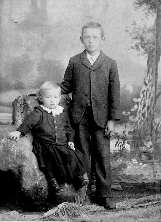One noticeable feature about the skirted garments worn by American boys was length. Many of the skirt lengths we see the boys wearing are very long. This included dresses, kiltsuit kilts, and skirts. Sometimes they reached down to the ankles. This was stylish for girls and women in the early-19th century, but by mid-century only women were still wearing long length skirts. We do not see this in Europe. And we are unsure why the skirt length for boys was cut this long. It is possible that mothers brought long skirts so that they could be worn as the boys grew taller, but this would not explain ankle-length skirts. Boys would never grow into skirts that long before breeching. Adult women wore skirts to their ankles. Teenagers might wear longer dresses, but girls commonly wore shorter lengths. We are not yet sure about girls at this time. This is something we hope to assess in more detail, but our prelimary assessment is that very young little girls did not wear such long skirts in the late-19th century. Another possibility is that the boy inherited his older brother's kilt suit. This can not be determined in single portrait photographs. The length of skirts may have varied from family to family, but so many young boys wore these long-length skirts that it seemns to have been an actual style. The long skirts worn with kilt skirts seem especially strange as kilts were knee-length garments and their older brothers commonly wore knee pants. And for some reason, it was the youngest boys that had the longest skirts. The Philadelphia boy on the previous page wearing a Fauntleroy kilt suit probably in the 1890s is a perfect example. Another good example is an unidentified boy wearing a jacketed dress with a very long hem also probbly in the 1890s is another good example. The older boys still not breeched wore shorter skirts.
