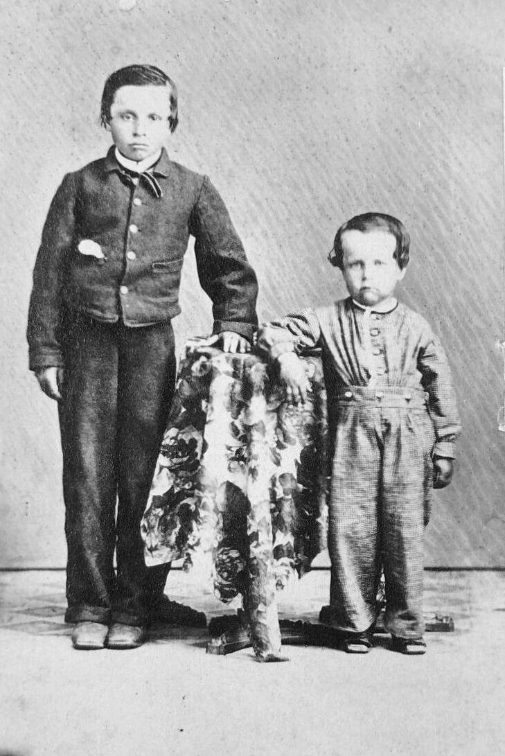 We see both button-on one-piece suits and jacket suits in the 1860s. Youngerboys might wear the one-piece suits. We do noy yet have a good fix on the age conventins. We believe that tghey were worn by pre-school boys and boys in the early-primary years, boys usually up to about 8 years of age, but perhaps as old as 10 years. This is just our preliminary assessment. We see various jacket suits as well. There were two common styles. one was the the short, collar buttoning jacket like the boy here is wearing (figure 1). The other was the cut-away jacket suit. These jacket suits were worn by older boys. We see boys of aboyt 5-12 years of age wearing them. We need to archive more images before definatively establishing the age ranges. We think that the age range for the collar buttoning suits was a little highee than the cut-away jacket suits. The Lincoln boys in the White House wore the collar buttoning suits. Mrs. Linclon who was obsessed with with fashion, but did not give all that much attention to the boys' outfits. A factor here was that the Lincolns came from a rather small Western town (despite being the state capital) and not a fashionable northeastern city. We also see sack suit jackets for older boys.