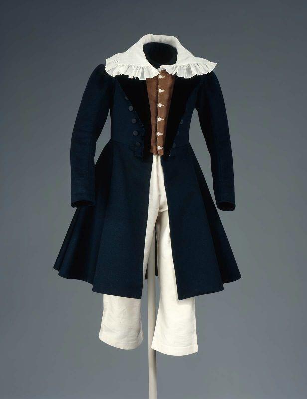 The 1830s was the last decade for which photographic evidence is not available, but America was growing and we have mnore imafges than ever before. Our visual information, however, is still limited, having to rely on paintings (often naive works) and drawings. While not masterworks, these naive works commonly have detailed, accurate depictions of clothing. Thedre are also some surviving vintage garments. As a result we have little information on the suits boys wore during the decade. We believe that the sleleton suits popular in the early-19th century were going out of style. The button-on jackets were declining in popularity. We see entirely sepatate short jackets. We also notice frock suits and long jackets which would have been worn by older teenagers and adults, but probably not very commonly for boys. They were most likely to wear the short jackets. We are not entire sure about the collars and lapels as we have so few images. And in some cases the top of the jacket is covered with large lace or ruffled collars. A destinctive popular style was a shirt jacket with long tails. Some of the tails expanded on to the front. For adults they closed becoming frock coats. For boys they were most liklely to be kept open. Almost closed they had a skirt like appearance. Generally the coat and pants did not match. This is difficult to follow, however, without the availability of photographic images we have so few images to work with. We thus have few details at this time. An important factor here is that America was still an agricultural country with just the beginning of economic development. This affected income and prosperity. We believe lot of boys with not have suits with expensive jackets. Boys from well-to-do families might wear tunics. America was still a largely rural country with few big cities. The population was thus largely self-sufficent, but noit very fashionable farm families. Most boys at the time probably wore simple blouses and other shirt-like garments. Relatively few boys had proper suits. (You see this in 1840s Dags--we still see realtivelky few boys wearing suits. And this was a decaded in which we do have large nunbers of images thanks to the rapidly expanding photograpphic industry.)
