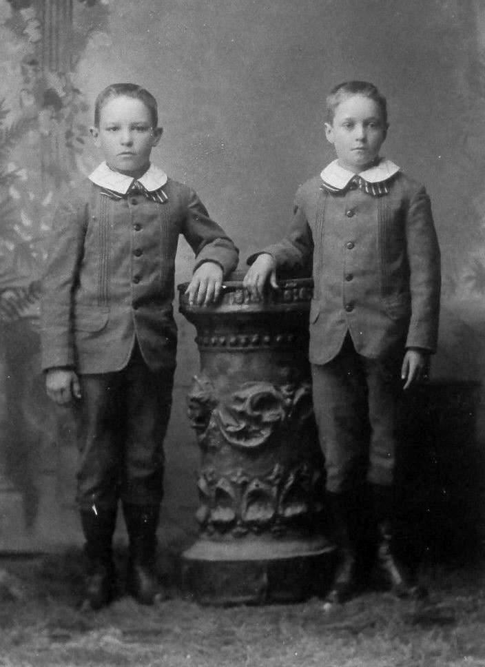 We are not entirely sure what kind of shirt or shirt-like garment was worn with these jackets, but it is a topic we have begun to address. We see these jackers worn with and without shirt collars jackets. And we are not sure if the boy buttoned the jacket over a shirt collar or if he was wearing a shirt waist without a collar. With the collars buttoned you could not see what was worn underneath. A good example is the jacket worn by Jesse Bell in 1884. These coats had collars rather than lapels. But some were worn so that a shirt collar of some kind peeped out at the collar or was fully vissible, this and the style of thecollar varied over time. With the onset of the Fauntleroy craze (1885), mothers could not help themselves from adding larger, often fancy collsrs to these collar-buttoning suits. These collars began to get larger and by the end of the decade, large ruffled collars commonly covered up the collars of the jackets. Another issue is that therewere also derachable collars during the period that collar buttoning jackers were worn. We suspect that the smallar collars were part of the short, but that the larger collars such as Eton collars were delachable. The boys here look to be wearing detachable Eton collars (figure 1). The large ruffled Fauntleroy collars for smaller boys were commonly part of the blouse. Actual lace collars, however, might be pinned on to the jacket.