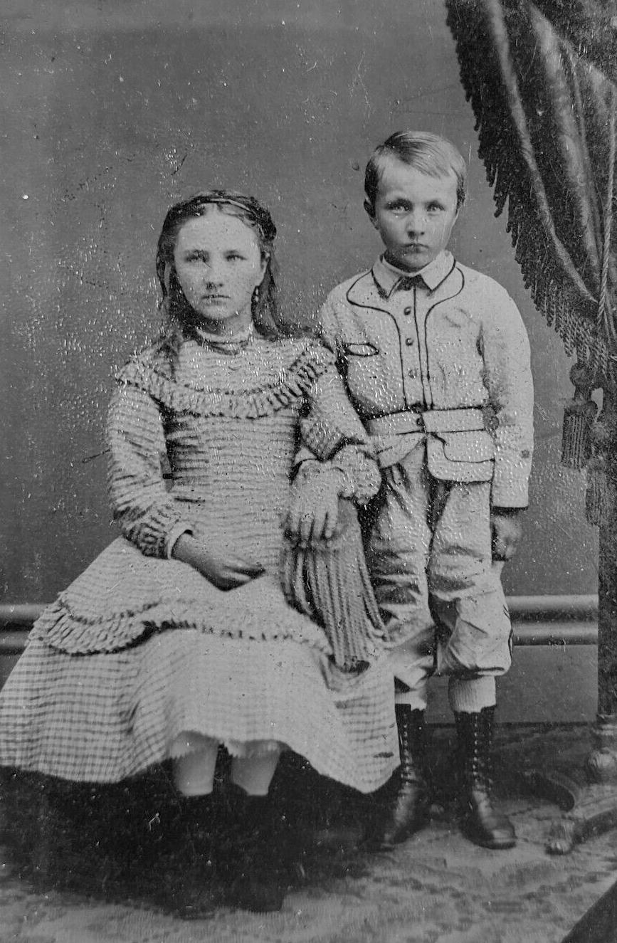 A major competitor to collar-buttoning jackets in the 19th century was the button-on suit. This was a suit without a jacket, but a blouse-like top that matched and buttoned on to the pants, looking something like a modern jump suit. We note one collar buttoning jacket that looks vaguely like a button-on suit. Only the waistband hiding the buttons has been relaced by a belt. This was a rather unusual suit style. It was something we have not noted before, but we do have this example. It was an undated tin-type which looks like it was taken in the 1870s, probably the early-70s. This was a period in which the button-on suits were especially popular. We at first thought this was a button-on suit, but the belt and length of the top means that it has to be a collar-buttoning jacket.