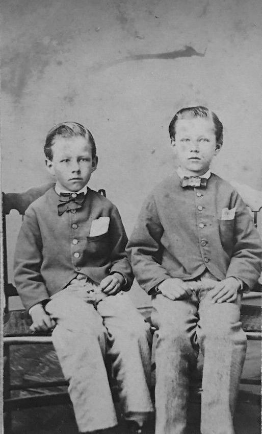 Cut-away jacket suits were a style popular duriung much of the time that collar-buttoning jackets were worn. Most collar-buttoning jackets buttoned all the way down and not just at the collar. The number of buttons varied. In the mid-19th century there could be quite a number of buttons. This depended in part on the age/size of the boy. We see kackets with 6-10 buttons and suspect that there were some jackets with even more buttons. Gradually over time as we reach the end of the century we see the number of buttons decline, nbut they tended to be highter than the lapel jackets as there was more of the jacket that had to be buttones. Most of these jackets had right angle sides where the two sides meet at he bottom of the jacket. The jacket the boys on the previous page are wearing is a good example. We see some fusing of the collar-buttoning and cut-way style. Sometimes boys mightwear their cut-away open, rather like a cut-away jacket. We note a Philadelphia boy, probably in the 1860s who is a good example. We see other examples such as collar-buttoning jackets that have rounded rather than squared off bottom corner sides. The boy here is a good example (figure 1). This is the style of most cut-away jackets, but less commonly the collar-buttoning jackets. Only the collar-buttoning jackets are not cut-way to any extent for these collar-buttoning jackets.