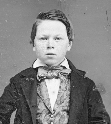 clearly shows that mny did. Not only did they not match, but the vests were often a blaze of bright colors and bold ptterns. This was not a boy's style. Adults also wore these brihghtly color vests, at least young men. We see an unidentified young teenager wearing a bold plaid vest in the 1840s. An exception was the frock coat suit which was not a boys' style. We also see teenagers wearing somber frock coats with black vests matcing their coats. A good example is Clarence E. Summer, we believe in the 1840s, perhaps the early-30s close to the 30s. We also see boys wearing vests without jackets. We think by the mid-1850s, the bright, coloful vests were no longer common.