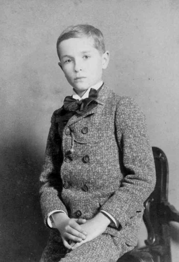 Twwed was a very popular fabric for both boys and men's suits. Clothing catalogs commonly offer suits done in a wide varierty of tweeds. We believe the boy here is wearing a tweed suit (figure 1). Most aterial is difficult to identify in the photographic record, but close-ups can sometines give a good idea about the gabric and weave.