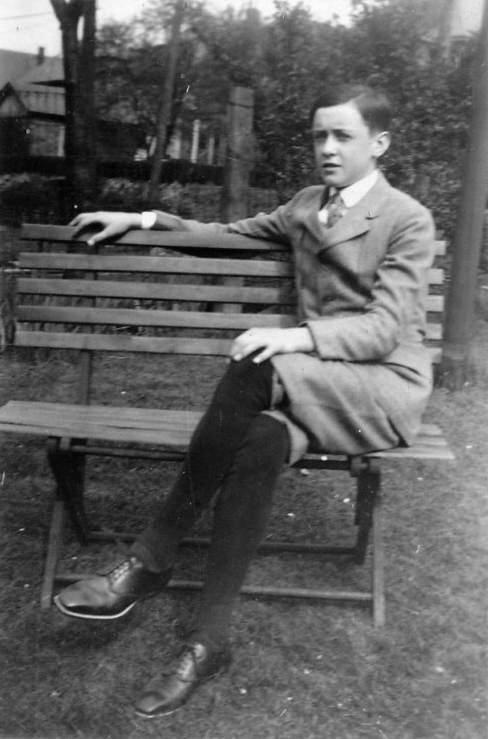 American boys at 14-years old mostly wore long pants suits in the 19th century. Age 14 was a pivotal age for boys. Boys at age 13 were entering their final year of primary school and some were 14-years old by the time they were finishing. This was a relatively small number of boys in the early-19th century, buy by the end of the century, this was a very substantial number. America had one of the finest public school systems in the world. And many boys even in rural areas were completing the 8 year primary program. Secondary education was much more limited, but increasing. And 14-years old was when children began high school in the 9th grade. It was still common for 14 year olds to wear long pants, even in the 1889s, but had begun to change by the late-1880s. We begin to see see many 14-year olds wearing knee pants in the 1890s and 1900s. And the same age conventions continued for knickers. It was still very common for 14-year olds in the 1920s to wear knickers, both boys who continued their education in high school or ended their education with primary school. This varied from family to family. The boy above looks to be about 13-14 years old, probably in the late-1920s (figure 1). The age range continued to narrow in the 1920s and by the 1930s many boys at age 14 years were beginning to wear long pants suits like their fathers. We see more boys wearing long pants at 14 years of age inthe the 1930s, especially the late-30s. By the 1930s, especially the mid-30s almost all of the boys in high school were wearing long pants suits. After World War II, high school dress began to become more casual and by the 1950s you no longer see many boys wearing suits to high school.