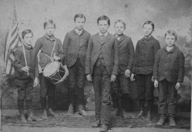 Boys wore suits as atandard garment in the 1880s. Knee pants became an increasingly important type of pants for boys as the 19h century progressed, especially younger boys in urban areas. Norfolk styling was popular. And Little Lord Fauntleroy suits appeared for younger boys. Both were worn with knee pants. Knee pants were very widely worn by the 1880s, but still by younger boys at the begiining of the decade. We see more and more boys wearing knee pnts as the decade progressed. By the end of the decade, most younger boys in cities were wearing knee pants, teenagers even younger teenagers still wore long pants. Knee pants were less common in rural areas, especially for older boys. A few boys wore knickers, but straight-legs knee panrs were much more common. The Gauntleroy Craze began at mid decade. This was predominately a style for younger boys, especially the classic style with a cut-away jacket. American boys almost always wore Fauntleroy suits with knee pants. Sailor suits were also popular. We see them worn with both knee pants and long pants. Knickers were less common with sailor suits.