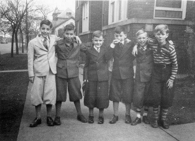Younger boys wore the short pants suits. Older primary boys might wear either knickers or long pants suits, but the long pants were beconing increasingly common. The boys here in 1940 look to be about 9 years old (figure 1)