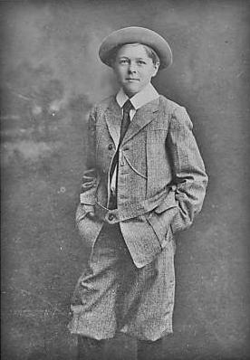We see a variety of headwear worn with Norfolk suits, primarily because headwear styles changed during the long period that Norfolk styling was popular. At this time we are unsure about the headwear boys wore with Norfolk suits during the 19th century. We think various types of hats werre most common, but this needs to be confirmed. We know much more about the 20th century. We mostly notice boys wearing caps after the turn-of-the centuryin the 20th century. There were a variety of caps in the 1900s, but by the 1910s, flat caps were standard wear for American boys. In sharp contrast to the variety of caps worn in the 1900s, we rarely see other styles in the 1910s and 20s. So we see numerous images of boys wearing flat caps with Norfolk suits. The flast cap and Norfolk suits became a caracature of school boys during the early-20th cerntury. Hats were also worn, but the photographic record suggests that they were not very common.