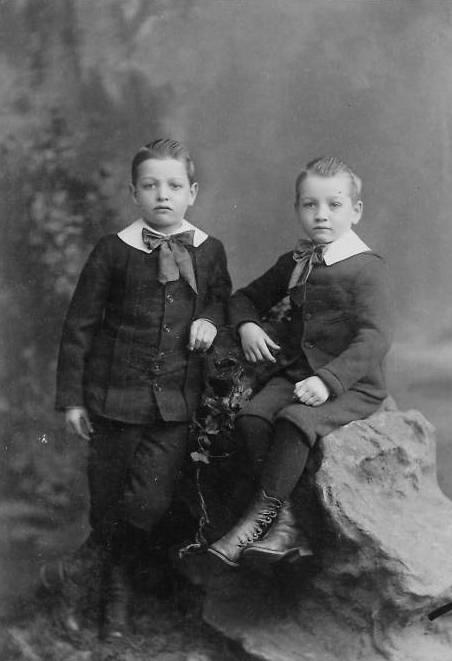 We see Norfolk suits being worn with a wide variety of shirts and shirt-like garments. Shirts and blouses are more complicated in part because in the 19th century boys wore Norfolk jackets without lapels that buttoned at the collar. Thus we can not see the blouse or shirt/shirt waist they are wearing. We can see large detachable collars like Eton collars that were popular. The Norfolk collar seems especially popular with Norfolk jackets and wasworn during several decaded durung which there were major changes in shirts and collars. By the 1880s when the Norfolk suit had become a major style, we see quite a number of boys wearing it witn Eton collars. We do not, however, see many boys wearing Norfolk jackets with lace or ruffled collars. We are not exactly sure why. Presumably the age conventions for Norfolk suits were a factor or perhaps the Norfolk suit had a sporty look that did not go well with lace or ruffled collars. The Eton collar of course was also a formal collar. Both to an extent had school associations.see Eton collars after the turn-of-the 20th century, but they fradually beconme less common. After the turn-of-the 20th century we begin to see Norfolk jackets with lapels more commonly. Eton collars were still worn, but soft collars becoming increasingly common. We see Eton collars wirn much less commonly with the Norfolk jackets that had lapels.