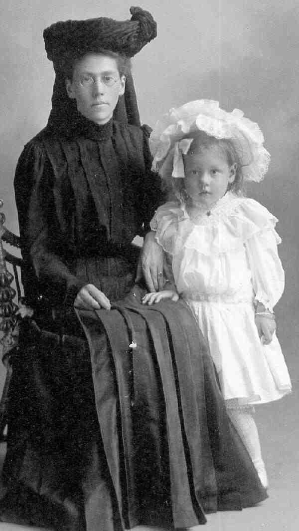 The first portrit on the previous page shows the boy at 2-3 years of age with his sister. In this portrait one he is wearing a white dress. It is very difficult to make out any details about the dress. The second portrait shown here shows the boy with his mother (figure 1). He is still unbreeched and wears a white dress and extremely fancy bonnet. Had it not been for the fact that this image was in a group, we would have assumed the child here was a girl. The child also has a small braclet. The mother is wearing a long dress so I guess that would make it before World War I. The mother looks like she is in mourning dress.