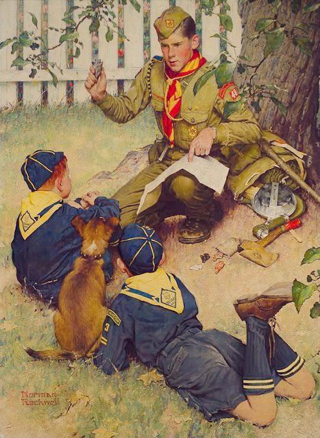Scouting was very popular when I was a boy. I was briefly a Cub Scout. It was either during 1960 or 61. I was never much of a joiner and I think I was a Cub for less than a year. The high point of my brief scouting career was a trip to West Point which entailed a train and boat ride. Mom took me down to Lit Brothers Department Store in Philadelphia to get my uniform. I noticed Norman Rockwell did a lot of work on Scouting, both Cubs and Boy Scouts. He often depicted Cubs in a short pants uniform with matching knee socks. The illustration here is a good example (figure 1). My uniform was just like the ones here, only I had long pants. And the rest of my friends did also. I think I would have balked at joining if I had to wear short pants and knee socks--especially as everyone else was wearing long pants. But I don't think I would have liked it even if some of the boys were wearing shorts. I never recall seeing any Cubs in my era wearing shorts, at least in Philadelphia. I remember the weekly meetings because my mom became a den mother and we met at our house. I kind of remember the handbook which showed the uniform options and I do remember seeing shorts as an option. In fact I never remember seeing any Cubs in my era wearing shorts, at least in Philadelphia. Actually for some reason, it was more common for Scouts to wear the short pants uniform than Cubs. I always remember wearing polished black Oxford shoes with the uniform as I believe that was a requirement in those days. The information HBU has on Cub uniforms is interesting.