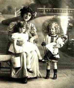 Reader comment: A French reader tells us, I agree that this is a French image. The child on the mother's knee is a girl, but the other child could be a girl or a boy.