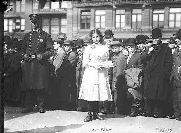 Tresca met Elizabeth Gurley Flynn (1890-1964) (1912). Flynn was acive in the movement. She was an effective labor organizer and orator. She was active in both the IWW and Communist Party. Tresca and Flynn were close for 15 years. Tresca in addition apparently had a relationship with Sabina ("Bina") Flynn, Elizabeth's youngest sister. Their son, Peter Martin, founded the famed City Lights Bookstore in San Francisco. Bina married Romulo Bobba. Bobba was arrested by Federal agents in the sweep against the IWW (1917). He was confined at Fort Leavenworth.
