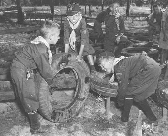 World War II also had an enormous impact on boys' fashions. Quite a range of fashion shifts occurred during and after World War II. Some of the major changes included: an increasing shift to casual dress, less elaborate fashions, the disappearance of knickers, short pants began to be worn as summer attire, American boys stop wearing knee socks and long stockings, American Scouts and Cubs begin wearing long pants, "T" shirts and jeans became a mainstay of American boyhood, short hair styles become popular for boys in America after the War. Some of these fashions changes are clearly traceable to the War. HBC can not, however, always connect changes changes that occurred during the War as an impact of the War. That may be, however, as the full ramifications of the War are yet to be assessed. Many of the changes were most pronounced in America, and only began appearing in Europe during the 1950s.HBC has noted several changes in boys' fashions during and after World War II. The following is not meant to be a comprehensive list, but only what HBC has noted to date. The following is the list with some preliminary musings that require much more thought and assessment. While many changes took place during and immediately after the War, it is not altogether clear how the war brought them about. Some of the changes were the continuation of long time trends such as the shift toward casual fashions and life styles.