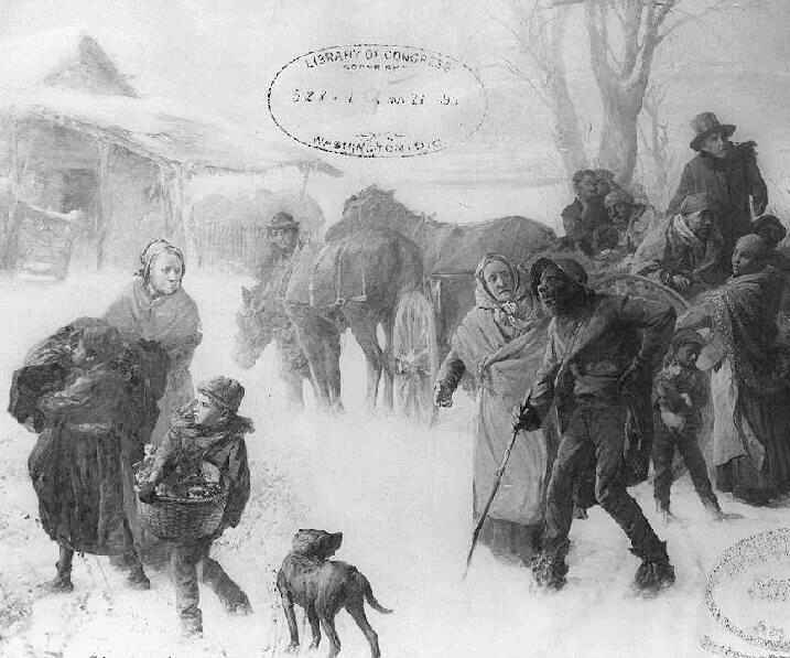 The Underground Railroad is an icon of American mythology. Many school children are disappointed to learn that there were no locomotives, carriages, and it was not underground. But exist it did and it played a major role, not so much in freeing slaves, but in brining on the Civil War which did free the slaves. The Underground Railroad was a loosely organized and constantly changing network of individuals and families who assisted fugitive slaves reach free northern states and Canada. There was no central organization or organizer so southern and Fderal officials found it impossible to shut down. Recent scholarship suggests that many whites, but mostly blacks (both free and slave) were involved in operaing the Underground Railroad. Many of the whites were reliously motivated. Quakers and evangelical protestants played important roles. The first operations are not known, but as early as 1786 George Washing was complaining about Quakers assisting one of his slaves escape. The term "Underground Railroad" was first used in the 1830s and by the 1840s was a universally used term. At the time the first railroads were just being built and they were the technical wonders of the day. The underground railroad adopted the terminology of the railroads. Stops were stations. Operastors were conductors and the fugaive slaves were the passangers. Many famous people were passangers. The most famous was Frederick Douglas himself. There were no maps or timetables and the whole network oprated with great secrecy. This was necessary because even in the free northern states the Underground Railroad was illegal. Not only could the slaves be seized, but anyone involved in assisting them could be arrested and procecuted. As a result the history of the Underground Railroad can not be documented with any detail by modern historians. No one knows how many slaves were spirited to freedom by the Underground Railroad. Most estimates suggest that the total may reach as many as 0.1 million people between the peak years of the Underground Railroad's operation. [Bordewich] Almost all from the upper-tier border states. Few slaves managed to escape from the deep south slave states. At the same time more slaves were shipped south to the cotton plantations of the deep south than escaped north. Also at the same time the slave population grew from 2.0 to 4.0 million. Some might conclude that the Underground Railroad was a failure. The real impact of the Underground Railroad was to inflame public opinion in the North and South. Slaveholders were furious that northerners would help their slaves escae. They demanded and got Federal legislation to strengthen slave catching operatins in Free northern states which fieled Abolitionist sentiment. This in turn further enflamed southern opinion. The outcome was that by 1860, sectionl sentiment had been fanned to such an extent that political compromise was no longer possible.