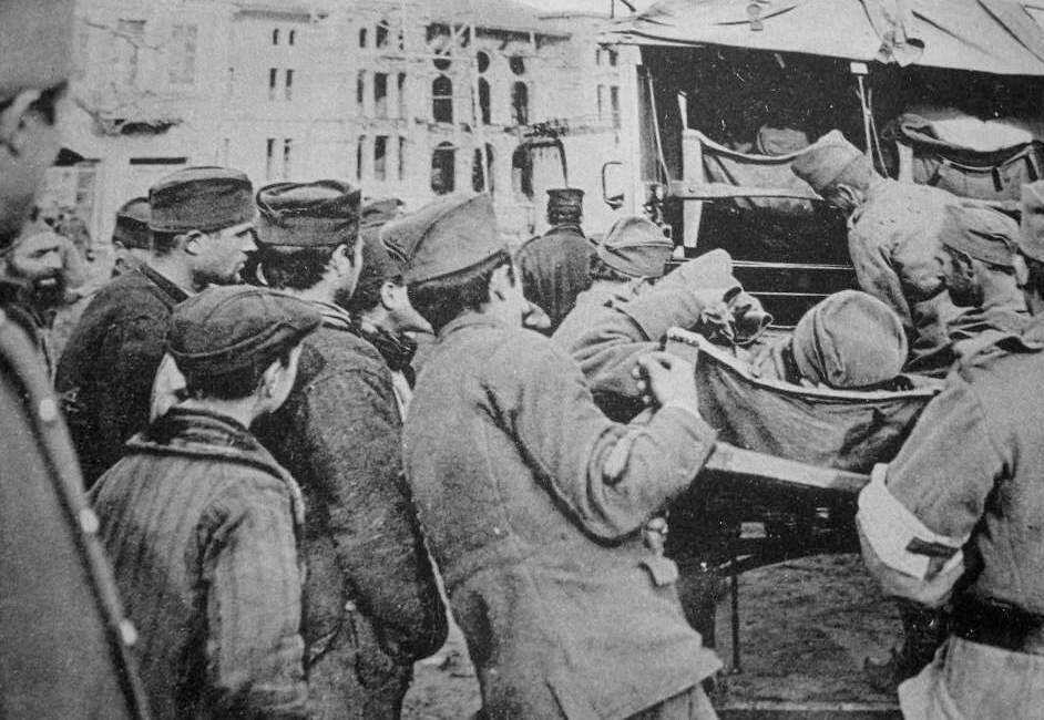 The resulting conflict was one of the most confusing and complicated series of wars and armistaces in European history. A reader in Belgrade writes, "There are serveral exhibitions here about the 1912 Balkan War. One exhibition is of postcards showing military scenes. 300 photographs of this war were taken. Solsiers liked to use these pictures to write home to their families. There is an open exhibition in the city pedestrian way about this War too. It was not a mechanised war. Infantry cavalry and horse drawn transport. Cars for general staff and a few trucks are shown. Images show machine guns and field artillary. Soldiers had rifles and are shown to be fully equipt with uniform and associated belongings. Trench warfare seems to have been planned as soldiers are shown in defensive trenches." The Alliances forces attacked Turkey in an effort to drive the Ottomons entirely out of the Balkans (October 1912). The objectives were Eastern Roumelia (Lower Thrace and Macedonia). This mean war accross a long border from the Albanian mountains to the Black Sea. The fighting was primarily conducted in Macedonia. The Balkan forces won several victories over the Ottoman Army. The most important was the Battle of Kumanovo (Battle of Kumanova / Кумановска битка) (October 23–24, October 1912). This was just a couple weeks after the outbreak pf the War. The Serbian Army won an important victory over the Ottoman army in Vardar Macedonia. After the battle, the Ottoman army abandoned much of Vardar Macedonia. They suffered heavy losses, not only battlefield losses, but many deseryions aw well. There were also heavy losses in war materiel that was difficult to replace. Much of the Ottoman modern weaponry and heavy arms had to be imported, often from Germany. The Balkan Coalition forces rapidly occupied most of Macedonia. The Ottomans were forced to request an armistice which was signed (December 4, 1912).
