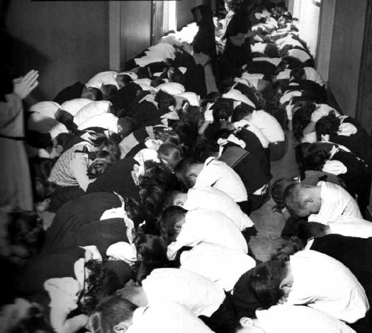 Widely publicized spy cases at the time added to the public concern about an internal Communist threat. Two of the most important involved involving Alger Hiss and Julius and Ethel Rosenberg. At the time the degree to which the Soviets had penetrated the Manhattan Project was not known. Only later were the Verona Intercepts lead to a fuller understanding of the Soviet spy network. Later Robert Oppenheimer himself came unders suspision. The Rosenbergs were not the most hamrful spys. There were others, including Klaus Fuchs who provided much more useful information. There is no doubt, however, Julius Rossenberg was a Soviet spy and was guilty of passing atomic secrets to the Soviets. The Rosenbergs and Greenglasses grew up in New York City's Lower Easr Side. Conditions there turned many to radical politics. Both Julius and Ethel became committed Communists. The Rossenbergs like many Jews had also become despondent in the 1930s over the rise of the NAZIs and persecution of the Jews. Many American Communists in the 1950s still viewed the Soviet as an utopian state. The Soviet role in World War II had gained them great prestige. The chilling horrors of the Gulag were not yet well known. Most Communists ignored the extent to which the Soviets cooperated with Hitler after the NAZI-Soviet Non-Agression Pact and the Soviet aggressions in 1939-41. Ethel had little to do with the spying, but the Government hoped to force Julus to talk by threatening to execute her as well. The trial was held in 1951. Concerned that they had no real evidence on Ethel, the Government induced of all people her brother, David Greenglass, to testify falsely against her in exchange for lenient treatment for him and his wife. Greenglass had actually stole the material that Julius passed on to the Soviets. The Government believed incorrectly that Julius headed a major spy ring. [Roberts] In the end, neither talked and they were executed, leaving two boys orphans. Years after the trial, Greenglass resurfaced for a television interview. There was no an ounce of remorse for what he had done to his sister. While the Rosenbergs provided information of only limited value, they proved to be enormously effective in Soviet propaganda to condemn the United States.