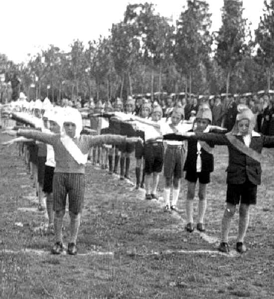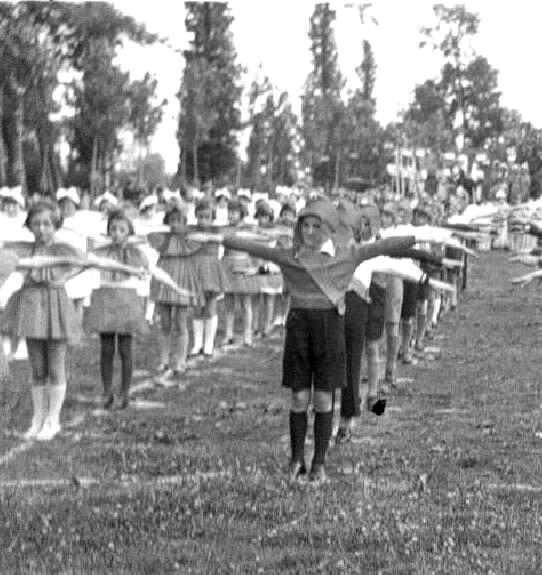![]() Figure 1.--Here is a scene from the 150th anniversary celebration of the French Revolution at a French school. That would mean 1939. Click on the image to see more of the groyp. |