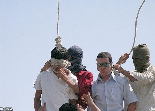 The Islamic Republic considers homosexuality to be a grave sin and people found guilty of homosexual acts are pubically hanged. The Iranian laws are based on provisions of the Holy Koran. Some sources suggest that the Iranian Islamic regime since seizing power in 1979 has executed about 4,000 homosexuals, including juveniles. The Irnian regime's policies are so aberant that autorities in the West often fail to believe that the execution of homosexuals can actully be the policy of the Iranian Government. Swedish authorities denied asylum to a gay man from Iran, stateing that they didn't believe his story that police had visited his parents and promised to kill him if he ever returned to Iran (1996). Consensual homosexual sex in any form is punishable by death in the Islamic Republic of Iran. Those found guilty are given a choice of four death styles: hanging, stoning, halved by a sword, or dropped from the highest perch. According to Article 152, if two men not related by blood are discovered naked under one cover without good reason, both will be punished at a judge's discretion. Gay teens (Article 144) are also punished at a judge's discretion.