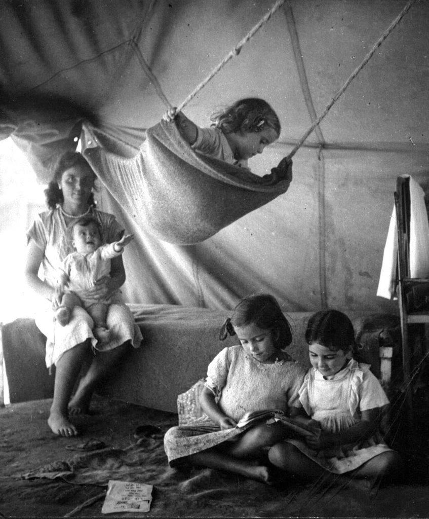The First Arab Israel War created huge numbers of regugees. This included not only Arabs and Jews in Palestine itself, but also Jews throughout the Middle East. News about the war inflamed the Arab public. The situation variesd somewhat from country to country. Jews were forced to flee Arab countries where they were attacked, arrested, beaten, and stripped of their policy. Many but not all sought refuge in Israel. Unlike other countries, Israel took in all Jews without question. There was thus a major refugee crisis on both sides. The arabs and Israel, however, had very different policies toward the refugees. The Arabs did not accept the United Nations partition or the establishment of a Palestianian state. Rather the invading armies (Egypt, Jordan, and Syria) annexed the area of Palestine that they seized. Not only did they not create a Plaestinian Arab state, but they refused to integrate the Palestinians in their population. Arab sources report 0.8-1.0 Palestinian refugees. Manfate census data suggest that this is an inflated number, greater than the entire Palestinian Arab poplation. Some 0.2 million Arabs remained in Israel after the War. This means that the number of Palestinian refugees was anout 0.6-0.7 million. These unfortunate people were confined to fetid camps, not by the Israelies, but their fellow Arabs. Arab governments did not allow them to move into the counry proper or seek jobs. Here policies varied from country to country. The Arab countries saw the Palestinin refugees as a disruptive influence and thus wanted them confined to camps. In addition they wanted to keep the distruction of Israel a major issue and the dispair of the Palestinian Arabs in these camps was a useful propganda tool. The number of Jews fleeing Arab countries for Israel in the years following Israel's independence was roughly equal to the number of Arabs that left Israeli occupied areas of Palestine. These Jews were forced to leave with little more than the shirts on their backs. Unlike the Arab refugees, they had had no desire to be repatriated. Little is now heard of them because Israeli policy was radically different than Arab policy. Israeli policy was to get the refugees out of the camps as soon as possible and assimilate them into Israeli society no mather where they came from. As a result, most Jewish refugees spent very little time in refugee camps. There were some 0.8 million Jewish refugees, some 0.6 million were quickly resettled in Israel at considerable expense. There was no offer of compensation from the Arab governments who appropriated their property and possessions. Nor was there any thought of using the funds generated to aid or compensate the refugees.