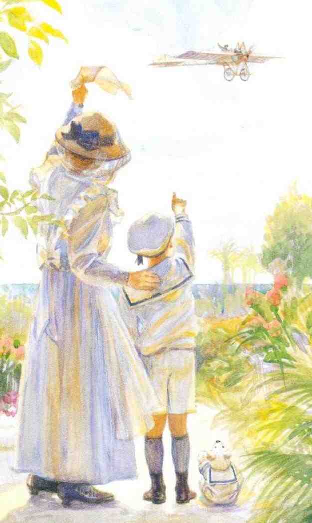 Figure 1.--They travelled to Cannes in the South of France. Here Douglas saw his first aeroplane. The wonderful illustration was done by Laurie McGaw. |