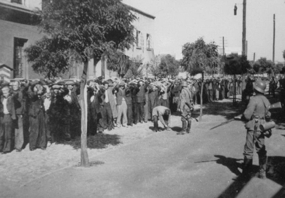 Concentrating Jews was necessary if they were going to be efficently starved, brutalized and killed. For this substantial manpower was required and the Wehrmact was extensively used in thes operations. What we see here is one example (figure 1). And the large-scale actions like Babi-Yar commonly used Wehrmacht troops to concentrate the Jews and drive them to their deaths. And while the SS was primarily involved in the actual killing. The Wehrmacht was not only involved in the killing, but played a major role in hunting down and concentrating the Jews so they could be killed by the SS. The actal killing could be done by relatively small numbers of people. Just look at the very small staffs of the Death Camps. Hunting down and concentrating required a much larger force--the Wehrmacht.