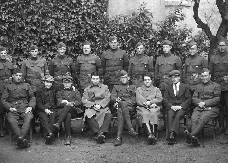 Significant numbers of American soldiers did not begin to arrive in France for some tome after the United states declared war. This was because the United States, unlike European countries, did not have a large army in being that they could immediately send over. The American standing prifessional army was only 127,500 officers and men. Pershing immediately went to France after his appontment (May 1917). He did not have an arnmy to take with him. The task of creating an army was assigned to others. The first troops, a mere 14,000 men arrived (June 1917). They were called 'Doughboys', the origins of the term sre still debated. For several months only a trickle of American followed. The numbers gradually increased. The 1st Division was the first American Division to be moved up to the front (October 1917). This was the only American division composed of experienced regular Army soldiers. It was thus the first American combat division to arrive in France. They were deployed near Nancy. Throughout the rest of 1917 and early-1918, American divisions were primarily deployed to support French and British units who soon hard pressed to hold the line against the German Spring Offensive. The 1 million man figure was reached (May 1918) and more troops were on the way. Large numbers of troops arrived monthly. In the peak month over 300,000 Americans arrived in France (July 1918). This was more than doublke the pre-War size of the U.S. Army. Pershing finally had the numbers he needed to opperate independently from the British and French. About half of the AEF had been moved up to the front line at this time. They plyed an important role in stoping the German Spring Offensive. And they soon had the combt experience needed to play a central role in the Allied war-winning 100 Day Offensive. By the time of the Armistics more than 2 million Americans had arrived in Europe (November 1918). And more than 40,000 civilians were serving in various capacities such as ambulance drivers. Nearly 200,000 were Afro-Americans. Most of the AEF was deployed to France, but a few were also sent to northwestern Russia and northern Italy. Another 2 million Americans were still training in the States. Few Germans who had to face the AEF in combat were aware that such a massive force had not even arrived yet. The NAZIs who manufactured the 'stab in the back' charge never mentioned those 2 million additional Americans yet to even arrive in France.