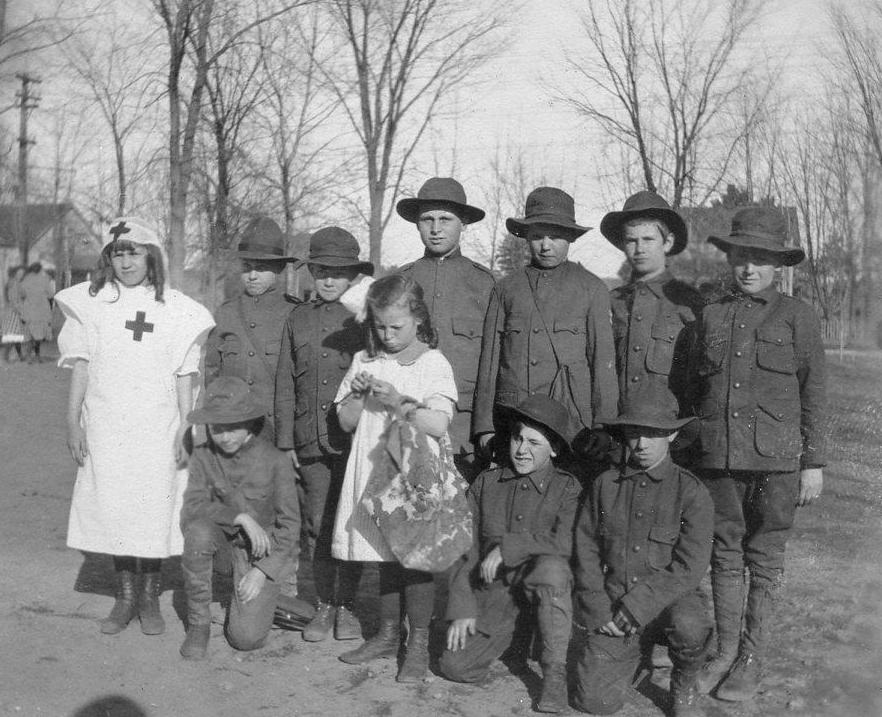 We begin to see uniformed youth groups in the late-19th century. The Boys' Brigade in Britain and Wandevogel in Germany were the first. The bigstep, however, was the the foundation of the Boy Scouts by Baden Powell (1906) and soon after the Girl Scouts (1910). And both groups especially the Boy Scouts quickly spread to countries around the world, especially Europe and North America. The American Boy Scouts were founded (1910) and quickly became the largest youth group in the world. As a reslt when World War I erupted in Europe (1914) there were youth groups active in all of the belligerant powers. As the War contrary to expectations was not ended quickly in a few decisive battles, it became a long war of attrition and the the civilan populations in each country was mobilized in varios ways to support the caticysmic struggle. And because of the various youth groups, there was a role for boys and girls. It is not unique that boys wre involved in warfare. Boys until World War I had military conbat roles. This was not the case in World War I. There were no pre-teen drummer boys. But because of the youth groups here was an expanded non-military role for children.