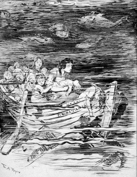 Soon after the sinking of Lusitania, commemorative medallion appeared in Germany. It seems to have been struck in Munich the medal was cast in iron and was 2.25 inches in diameter and weighed 1.5 ounces. The designer was Karl Goetz who created many World war I German medallions. The initials K.G. are clearly visible on the obverse. The medalion's obverse, under the inscription “No contraband” (Keine Bannware) depicts the Lusitania sinking. The outline of the liner has been made to look like a naval warship. The designer has also added aeroplanes, which obviously and as certified by United States Government officials after inspection, the Lusitania did not carry. And Goetz did not show the women and children who were on board. On the reverse, under the inscription “Business above all” (Geschaft uber alles), a smiling skeleton at the New York booking office of the Cunard Line is depicted. A line of waiting potential passengers and victims refuse to attend to the warning against submarines, given by a German figure in the background. The figure, presumably the German Ambassador, gazes reprovingly on the whole proceedings. As for Schwieger, he had tried to sink the British hospital ship Asturies (February 1 1915 . Fortunately for the wounded soldiers onboard, the torpedo did not hit. After sinkining Lusitania, when U-20 returned to Germany, Schwieger received the iron cross, first class. German authorities tried to keep his name secret. As the international outcry became obvious, the Germans suddenly became aware of the public relations disaster. They decided to wash their hands off Schwieger and tried to portray his actions as that of a runaway brigand. He was given a command in auiet area. Only asfter the United States entered the War, and Schwieger was killed in combat did he regain his hero status.