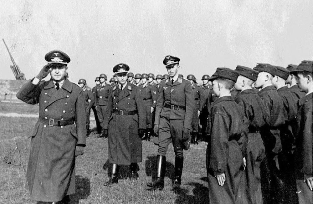 German Flak units were a part of the Luftwaffe. Luftwaffe field divisions had a mixed flak Battalion (Abteilung). Mixed means artillery of different calibers. It was composed of a heavy Battery (three 20 mm cannons and four 88 mm guns along with twenty-seven 20 mm Anti-Aircraft guns. There was a headquarters staff and signals support troops. The basic operational formation of the Luftwaffe was a Luftflotte. Each Luftflotte had a Flak Korps which consisted of two or more Flakbrigaden or Flakdivionen depending on where the Luftflotte was deployed. Luftflotte 5 based in Oslo had only limited needs for air defense. Luftflotte 7 Zentral (remaned Reich in 1944) responsible for home air defense was assigned the bulk of the FLAK divisions. The first FLAK Division was formed in Berlin (July 1, 1938). It was first named the Air Defense Command (Luftverteidigungskommando), but susequently named the 1st. FLAK Division. The Luftwaffe deployed 29 Flak divisions (Flak-Divisionen) grouped in to 7 Korps at peak strength. Each division normally was constututed with five FLAK Regiments (Flak-Regimenter). The regiments were composed of battalions which were designated "light" (leichte), "mixed" (gemischte) or "heavy" (schwere) depending on the size of guns with which they were equipped. A FLAK division also consisted of , one searchlight regiment, three motorized flak transport battalions (Flak-Abteilungen), one Air Signals battalion (Flak-Abteilungen), and supply troops. The number of transport battalions varied depending on the location and need for transport of the divisions. Division deployed around cities needed less transport than those in remote areas. FLAK gunners were at first Luftwaffe ground personnel. This was the situation whn the War began. As the War progressed, the demand for manpower outstripped the available miliitary age coharts of the Reich. The Luftwaffe answer was to assign Hitler Youth boys to man the FLAK batteries. The boys were not just used as helpers and runners. HJ boys constituted whole gun crews. At first this was just done in Luffflotte 7 Zentral because this was where HJ boys were available. The HJ boy crews were not deployed in combat areas outseid the Erich. For the most part these were boys still living at home at were often teenagers below millitary age. Of course by 1944, advancing Soviet and Allied armies had brought the War to the borders of the Reich. Initially the boys only supplemented the adult Luftwaffee FLAK gunners. Eventually virtually all the regular Luftwaffe gunners were replaced by the HJ boys. We notice both uniformd and non-uniformd boys. The uniformed boys wore their HJ uniforms.