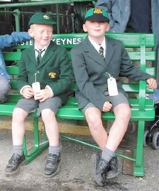 A British reader tells us that he visited a 'Heritage Railway' which was holding a World War II event. Among the people dressed in army uniform, 1940s suits etc were these two lads in the guise of 'evacuees'. Not enirely authentic, but all in all rather a "good show". they were certainly enjoying themselves. Note that they are wearing labels bearing their names in case of getting lost (figure 1).
