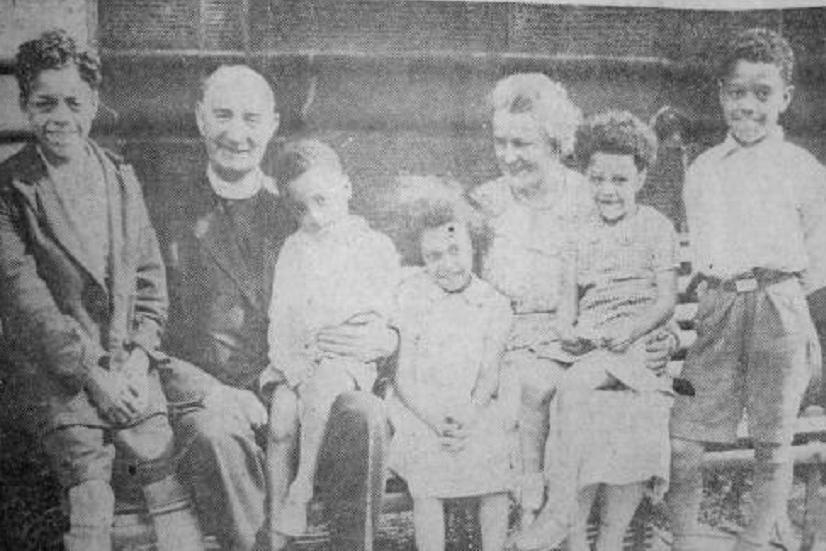 of him. I do not know what happened to this picture but if I can find it i'll copy it." A German boy and his family managed to escape the NAZIs just before the War began. Steven Muller and his brother were evacuated along with the British children only days after reaching Britain. A British reader tells us about Carl Orlins, an 11-year old boy who was evacuated from Manchester. He was evacuated to Darwen the next town to Blackburn. He recalls that it was about lunch time when he arrived at Darwen. He boarded a bus which took the evacuees to the homes where they were to live. It was a slow journey going from street to street and stopping and starting at the homes that were to care for the children. This was in 1939. In the available photograph are the Rev. Jackson of Holy Trinity Church Darwen, his wife. The evacuated children are called Sidney, Jack , Nina, Mary and Tom Jasper (figure 1).