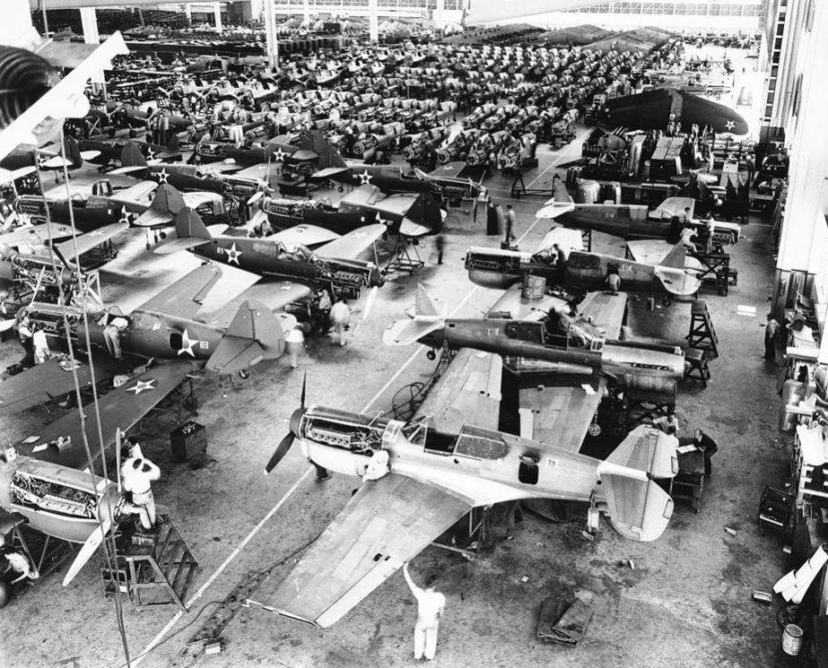 The United States at the time of World War II had an advanced aircraft industry. Quite a number of American companies produced aircraft during the War, including companies that had nothing to do with aviation before the War. Commercial aviation and airmail contracts helped support the development of signficant industrial capacity. And war orders in the late-30s further supported the industry. An important factor here is that the American aviation after initial government support (air mail contracts) was primarily built by America's consumer free market economy--the demand for commercial air travel. .