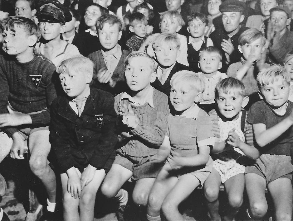 As in other areas, the Allied military attempted to aid civilians, especially with food and potable water. The fact that Normandy was a rural farming area made this easier than if large urban areas were involved. We have been unable to find information on Allied assistance to civilians in Normandy. In other areas, the Allies moved civilians away from combat areas, provided food and other relief supplies, repaired water and other public services, assisted with medical supplies and servuces. We have not yet, however, been able to find details about military civil affairs activities in Normandy. We do note numerous acts of individual and small groups of Allied soldiers aiding civilians. The press photo on the previous page is a good example And here we see the military showing Hollywood films to the children in Mazisy/Maisy, a small coastal village near the much better known Pointe du Hoc where the Germans built an artillery emplacement--part of the vaunted Atlantic Wall defenses (figure 1). Normandy was the most damaged area of France, so there was a great deal to be done. Mercifully aver Mortain and Falaise (mid-August 1944), the fighting moved north away from Normandy as the Germans retreated back to the frontiers of the Reich.