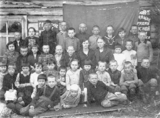 We do not yet have much information about the schooling of the children of the Estonians deported. I do not know to what exctent schools were set up for the children or at what age the young people were expected to begin working. We know that primarily schools were operating by 1946. We note that many of the families deported were were reasonably affluent and fashionably dressed in Estonia. The children here looked adequately dressed, but rather roughly, reflecting their new circumstances. One boy looks to be wearing a sailor suit. Many boys have shaved or cropped hair, but not all. We note a few boys wearing bangs. They also look well fed. Perhaps this reflects improved conditions after World War II, but most deportee accounts mention hunger. Perhaps this referred to the first years of deportment. One wonders what the children were told about the deportment in the schools. Presumablt the teachers were Russians. Secondary schools were also eventually established. Deportees, however, had dificuly gaining acceptance to universities.