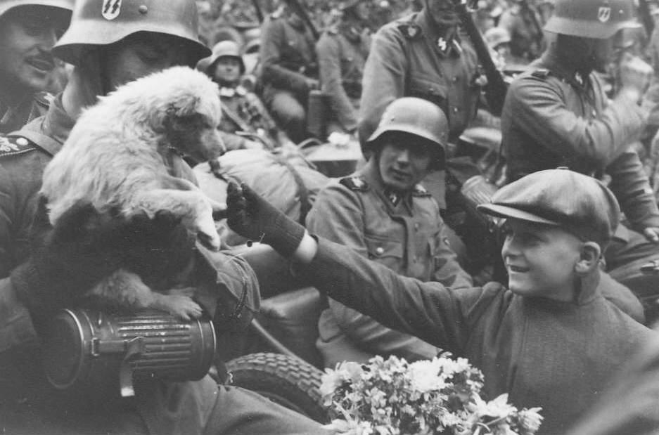 What was to become the Waffen-SS at first functioned under different names such as the Leibstandarte Adolf Hitler (LAH/LSsAH) and SS-Verfügungstruppen (Special Purpose Troops/Dispositional--SS-VT) without a unified command structure. They participated in all the major campaigns of NAZI Germany. The groups wee creeated with political violence in mind. It was no accident that the LAH personnel, at the time separate from the SS-VT, asembled by Himmler and Heydrich and provided arms by the Reichwehr, that carried out the brutal the Night of the Long Knives supressing the SA (June 1934). The SS-VT participated in all the pre-War actions, including the remilitarization of the Rhineland (March 1936), Austrian Anchluss (March 1938), the seizure of the Sudetenland (October 1938), and invasion of Czechoslovakia (March 1939). The SS-VT at this time was small and poorly armed. The Wehermacht saw them as asphalt soldiers, meaning parade ground formations. They did, however, provide teeth to the Einsatzgruppen formed to hunt down anti-NAZIS and firmly implant German control. We do not yet have details on the coordination, but we believed that worked closely with Einsatzgruppe I Prag in hunting down individuals. This mean Czech who were vocally anti-NAZI or associated with the deposed regiime. There were also Germans in the country that had defied the NAZIS. Einstazgruppen at least later in the War that conducted horific actions as part of the Holocaust has a major Waffen-SS component. These were all unopposed actions, Hitler having successfully backed down the allies committed to British Prime Minister Chamberlain's Appeasement policies.