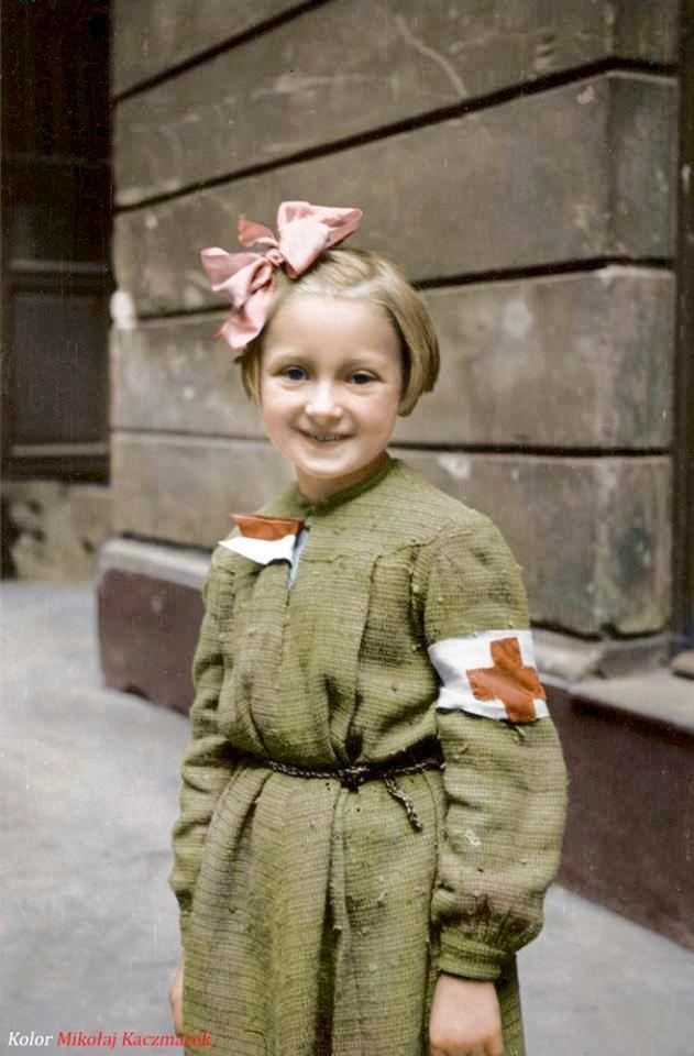 Różyczka Goździewska who was 8-years old was the youngest nurse (figure 1). Her father had been executed by the Gestapo (1943). Fortunately she managed to survive the War. As the Germans retook the city, the resistance fighters, including virtually all of the men were shot when captured. The inhabitants of Warsaw that survived, chiefly women and children, were rounded up and marched through the streets under arrest. Some were shot, especially if they had nothing with which to bribe the Germans and Ukranians. The fighters after the final surrender were accorded some protectipn.