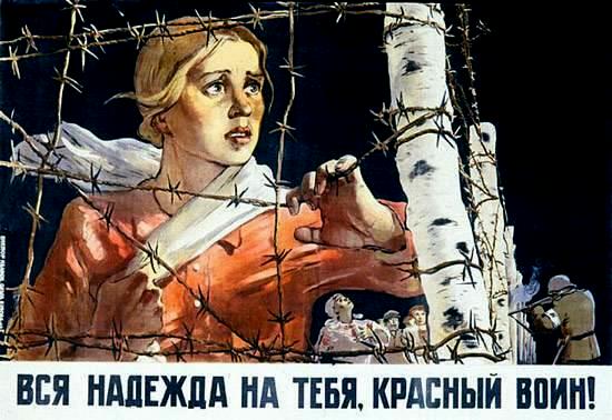 This of course changed dramatically after the Germans launched Operation Barbarossa, the most massive military invasion in history (June 1941).  Marxism soon took a back seat to Russian nationalism which suggests where the heart of the Russian people was at.  In addition, the attacks on the religion cased, at least publically.  The struggle became the Great Patriotic War, a modern day crusade against the evide embodied in Fascism.  Soviet war posters provide graphic images of the Soviet struugle against the NAZIS.  Images of women and children raveged by the NAZI invaders were meant to inspire the Red Army soldier. The images may seem over the top, only even the most graphic images do not capture the totality of what Hitler planned for the Russian people.  It was with Barbarossa that the Germans began killing Jews in large numbers.  There is no indication in Soviet war proaganda that the Germans were targeting Jews.  This must have been known so this reflects a political decision by Soviet authorities.  A Russian reader tells us, "Soviet posters never focused on particular nationalities, except rare posters dedicated to "friendship of peoples", alike "Russian and Chinese are brothers for ages". Soviet authorities dreamed to build a 'Soviet' people, without nationalities at all. About all people murdered by Nazis only the term 'Soviet citizens' was used."  Of course the Soviet people normally depicted was recognizable Russians.  Much of the propganda art focuses on the brutality of individual German soldiers.  There does not seem to have been an awarness of the overall German design--Generalplan Ost.  Some Soviet war propaganda had an almost religious tinge to it. But Communism in the Soviet state had in many ways the outward trapping of a state religion.  But what is even more evident was the historicaal tone.  Gone was the contanst emphasis on class struugle an evil capitalists.  Patriotic images of great Tsarist military heros were a mainstay of Soviet war propaganda from the Napoleonic invasion back to the medieval struggle against the Mongols.era.