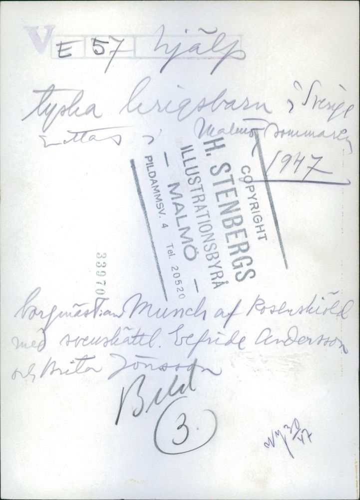 We note some German refugees in Sweden, but have been able to find little about them. We note that German anti-NAZIs and Jews attempted to enter Sweden. We know that for the most part that Jews were refused entry, but some respected individuals were granted entry like physicist Lise Meitner. We are not sure about anti-NAZI Germans. Some did gain entry, but were no allowed to egage in provocative activities. We believe some were arested and held in the interment camps Swedish authorities opened. Swedish resistance to Jewish immigration first began to crack when Norwegian Jews were allowed to enter after the German invasion (April 1940). The big shidt occurred when the NAZIs attemted to round up Danish Jews (October 1943). As the War went increasingly against Germany and the Allied bombing campaign intensifid that some Germans attemted to reach Sweden. We believe that the numbers were smaller than was the case for the German refugees who sought safety in Denmark. We do not know what the Swedish policy was oward these German refugees. It was more difficult to reach Sweden than Denmark. Nor do we know about German ppolicies toward the refugees. Many of the refugees may have been Germans with family or business connections. We have been able to find little information at this time.
