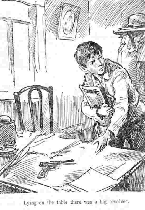 been left open and Vitya sneaked in. He saw a revolver on the table top so he took it. He hid it in a safe place. He was able to find ammunition for it. He then took everything home. In the illustrations Vitya is shown wearing an open neck shirt and western clothes (figure 1).